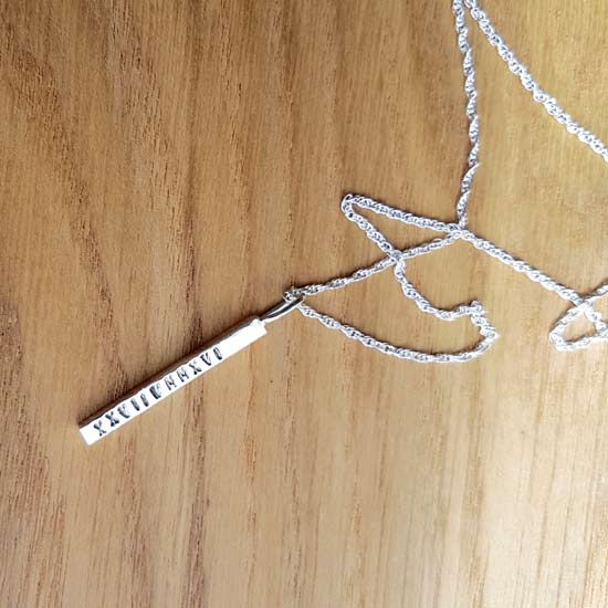 Handmade Sterling Silver Personalised Jewellery. Personalise your jewellery with meaningful text, that can be loved and cherished every day! Handstamped with initials, name, date, co-ordinates or quote of your choosing. All Mooi Jewellery is handmade in my small studio in the UK, using either Eco or Recycled Sterling Silver, Fine Silver and Gold.
